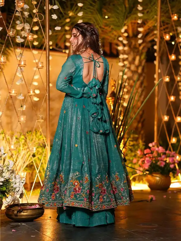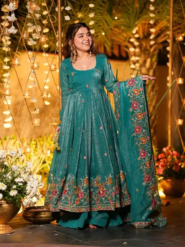 - 👗 Gown Fabric: Soft Crunchy Silk with multi embroidery & sequins work