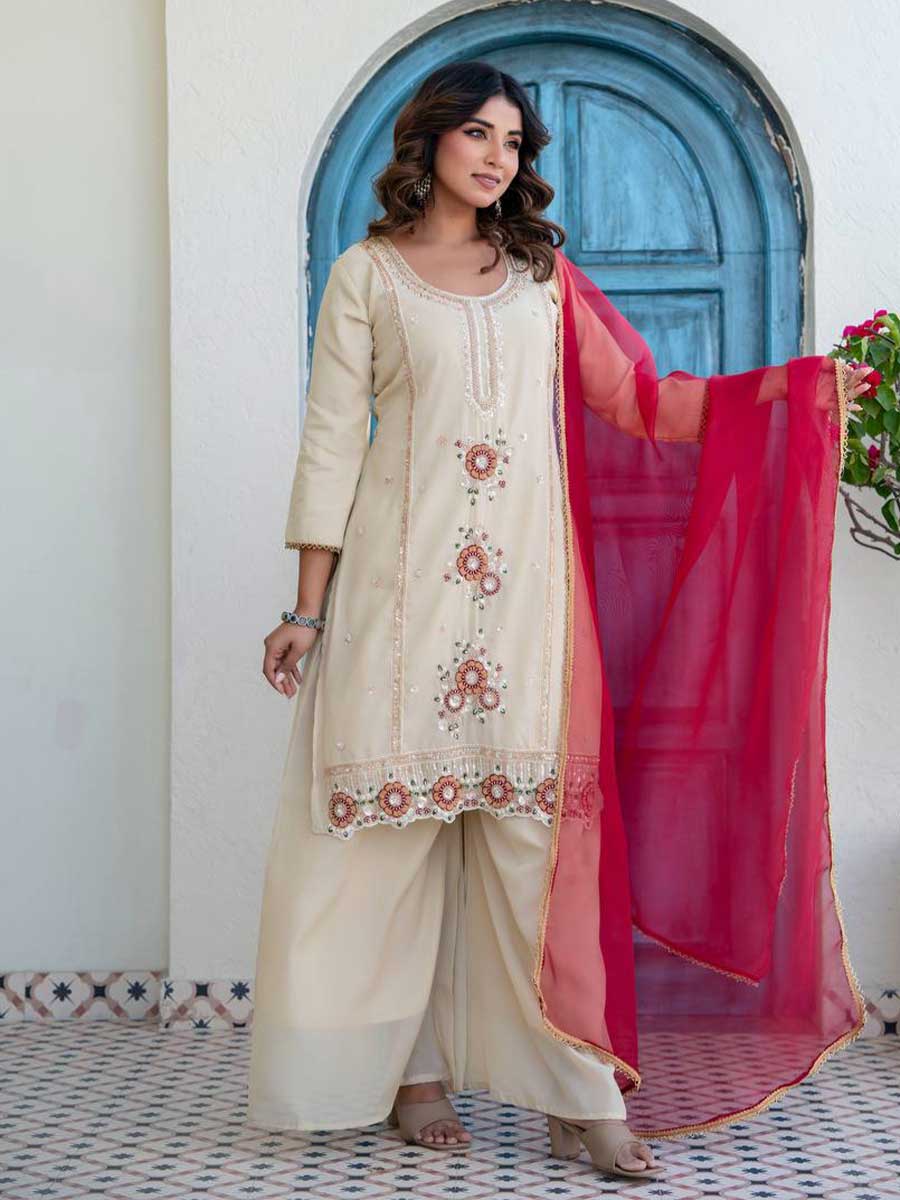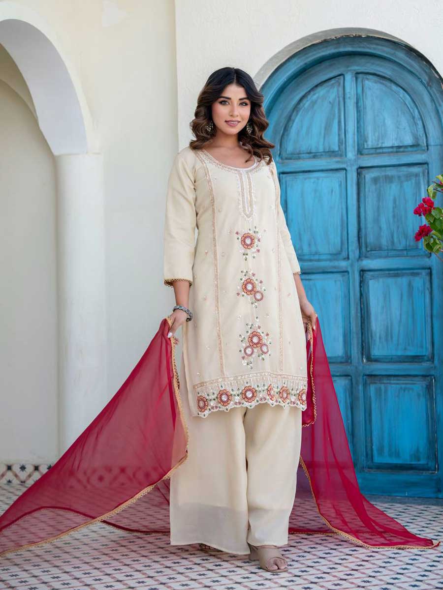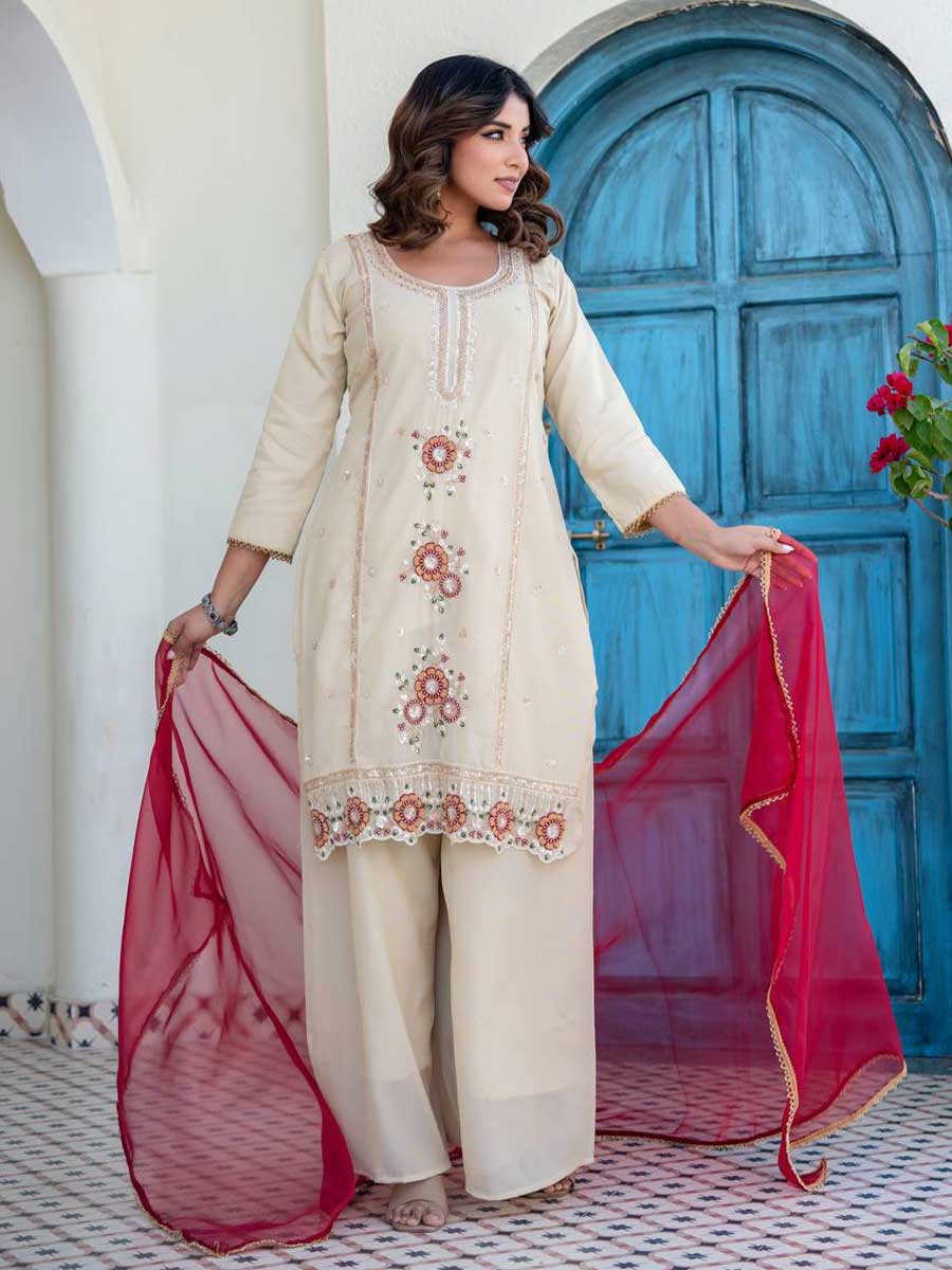 Package: 1 Kurti, 1 Palazzo, 1 Dupatta