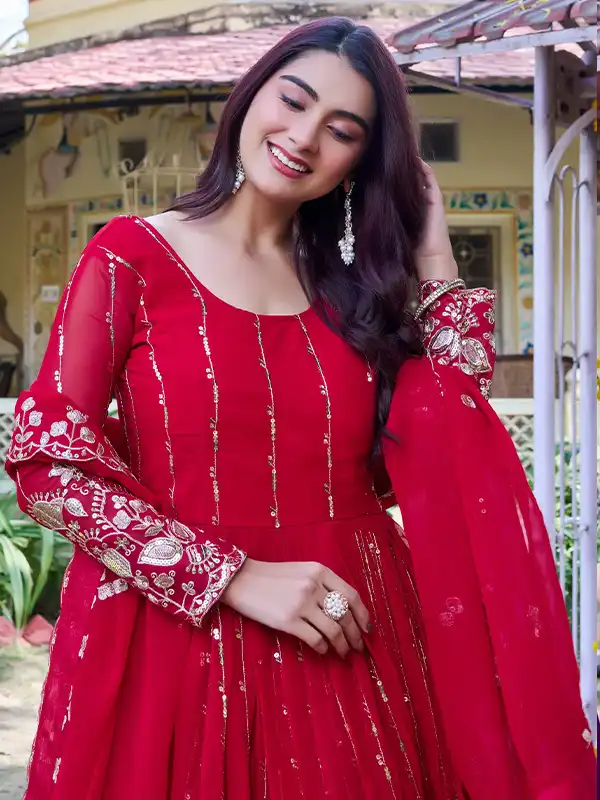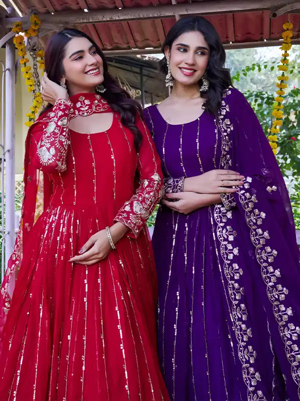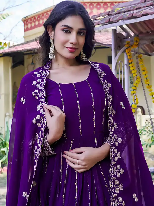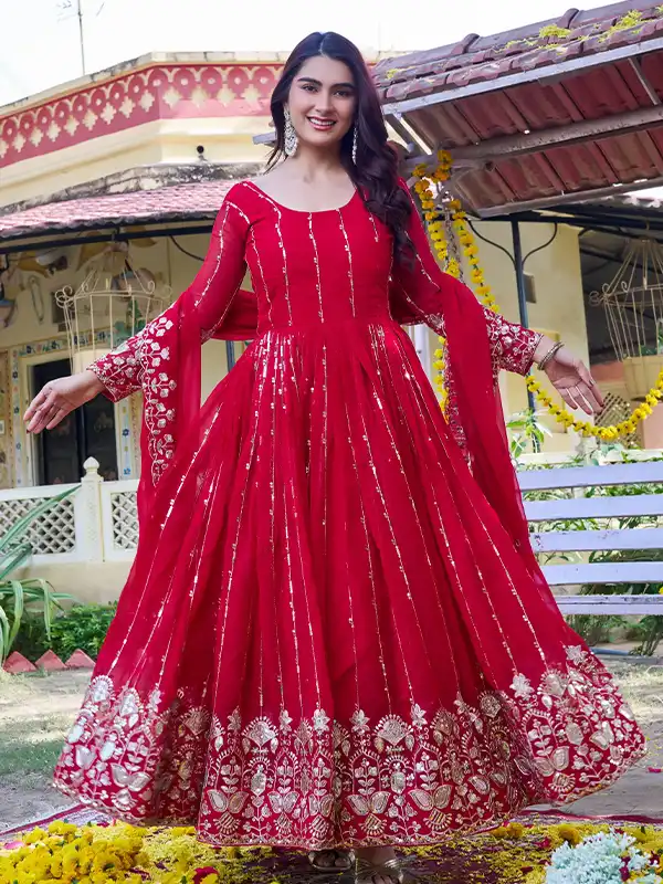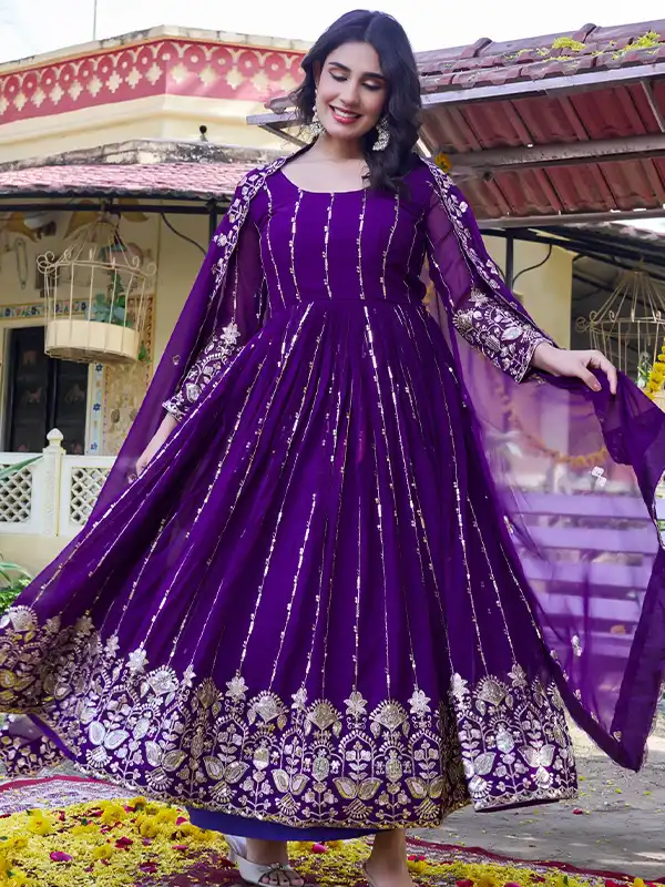 Step into elegance with this beautiful long gown with dupatta, crafted from premium fox georgette with heavy 5mm sequins embroidery—perfect for festive, party, and wedding wear.