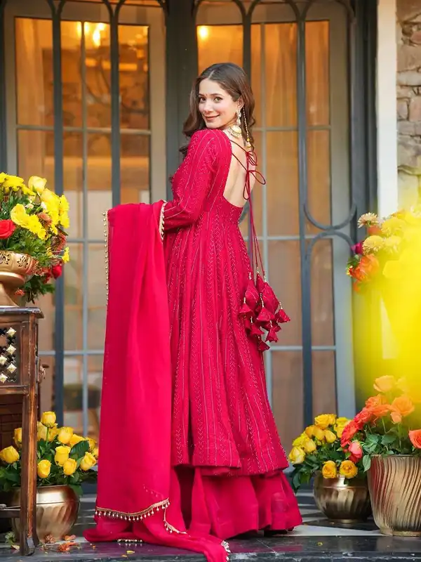 Be the first to review “Lal Pink Anarkali Sharara Suit – Blooming Set with Dupatta”