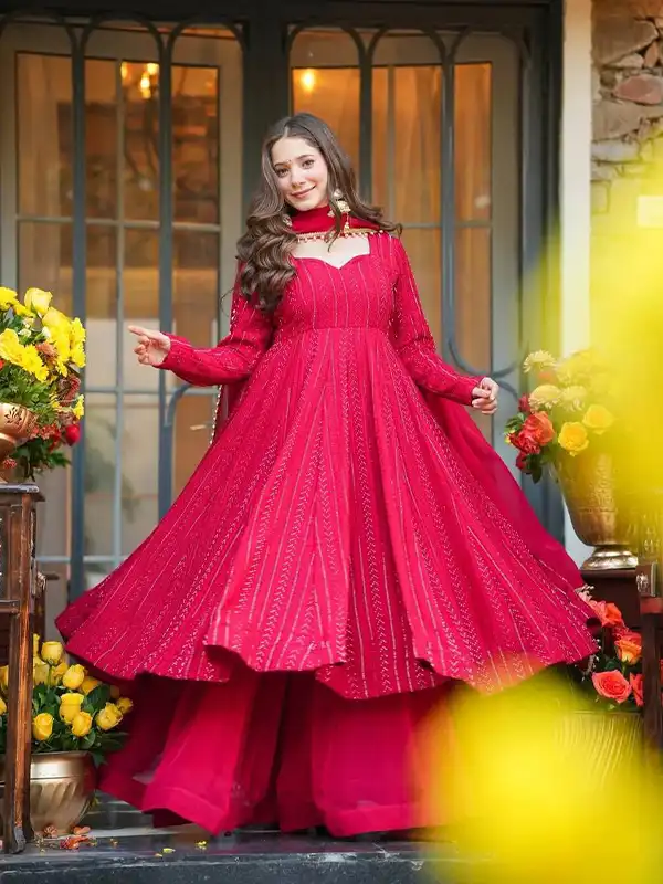Anarkali Sharara Suit – Lal Pink Embroidered Set